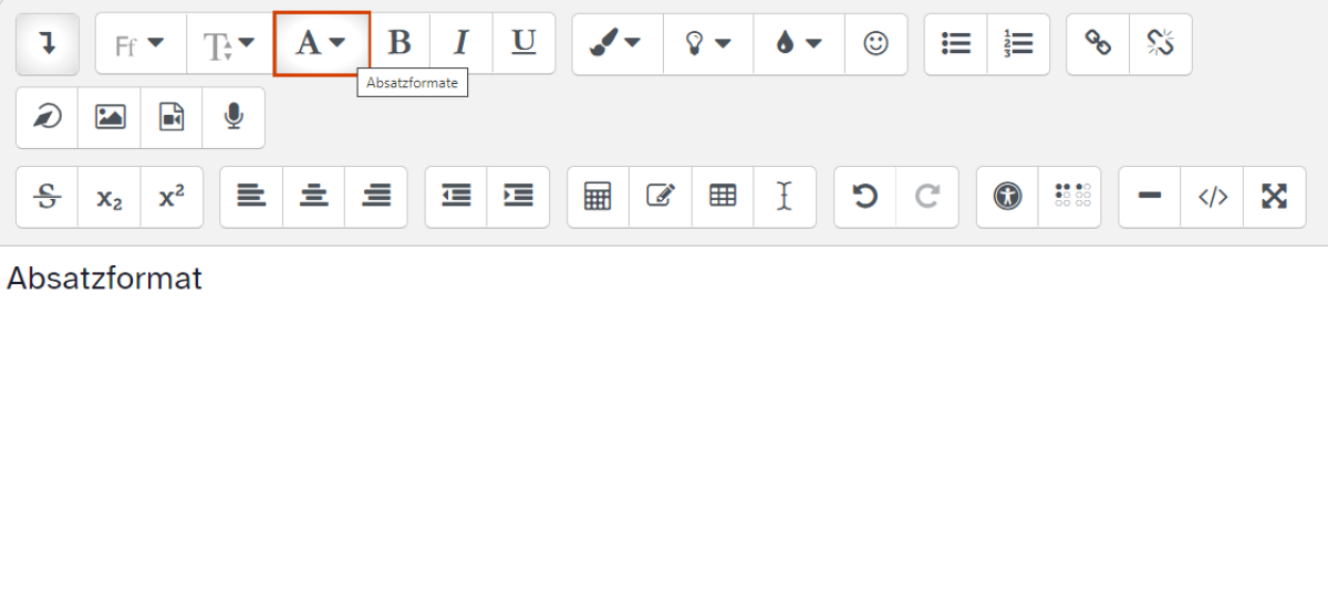 Um ein Absatzformat (Vorlage für die Formatierung eines Absatzes) für Ihren Fließtext festzulegen, klicken Sie in der Werkzeugleiste auf das Symbol mit dem Buchstaben A und wählen das passende Format durch Anklicken aus. Dies eignet sich u. a. für das Hervorheben von Überschriften.