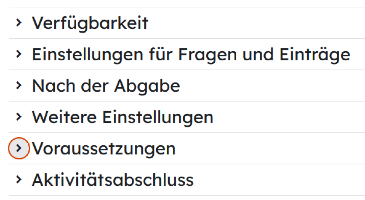 Tipp: Durch einen Klick auf das Augen-Symbol vor der erstellten Voraussetzung wird der Abschnitt, die Aktivität bzw. das Material für die Lernenden ausgeblendet, wenn diese nicht die Voraussetzung erfüllen.