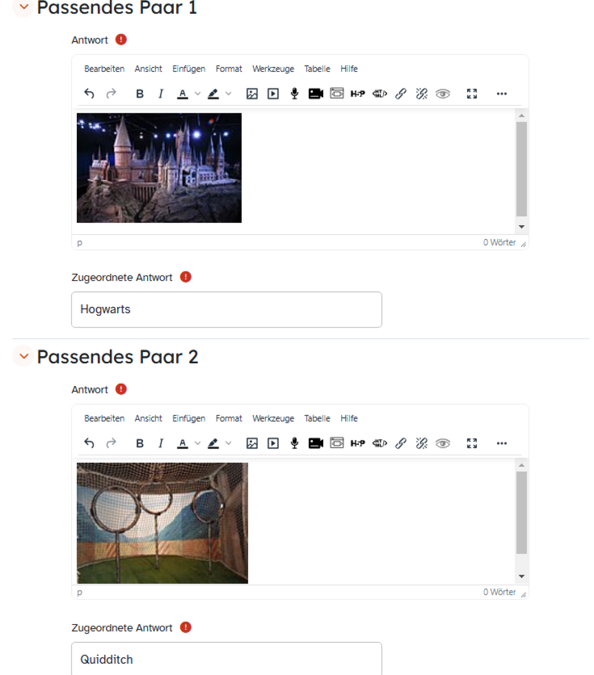 Beachten Sie: Je mehr passende Paare sie definieren, desto anspruchsvoller wird die Frage, denn dadurch erhöhen sich auch die Auswahlmöglichkeiten pro Zuordnung.