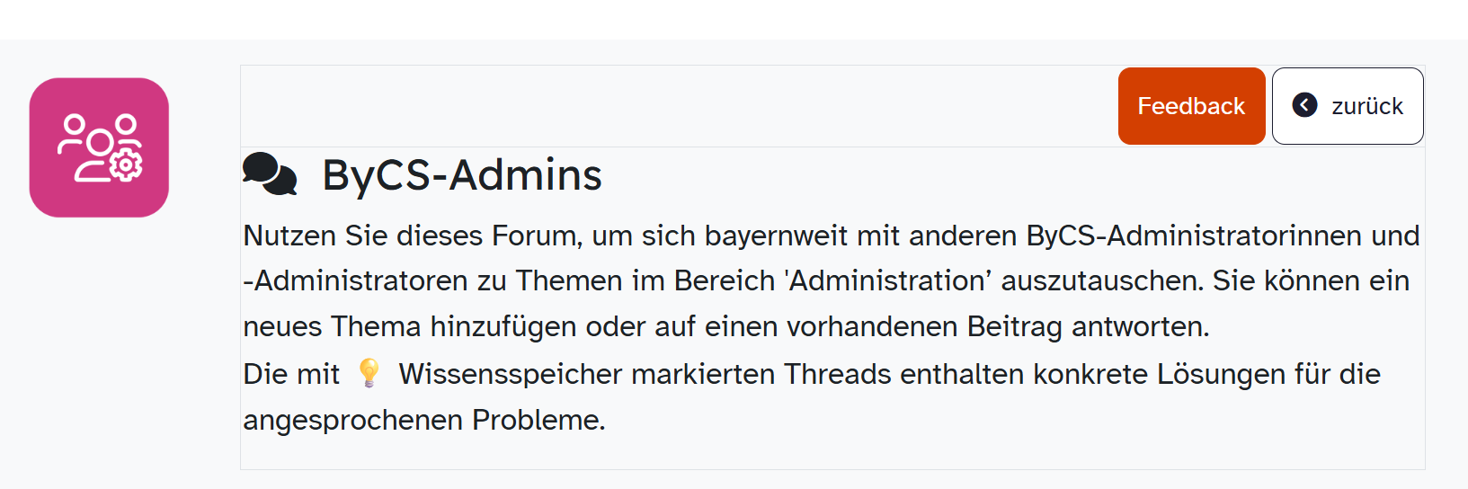 Die Support-Foren zu den einzelnen Anwendungen der BayernCloud Schule können individuell nach Interessen abonniert werden. Standardmäßig erhalten Sie also keine Ankündigungen über neue Beiträge.