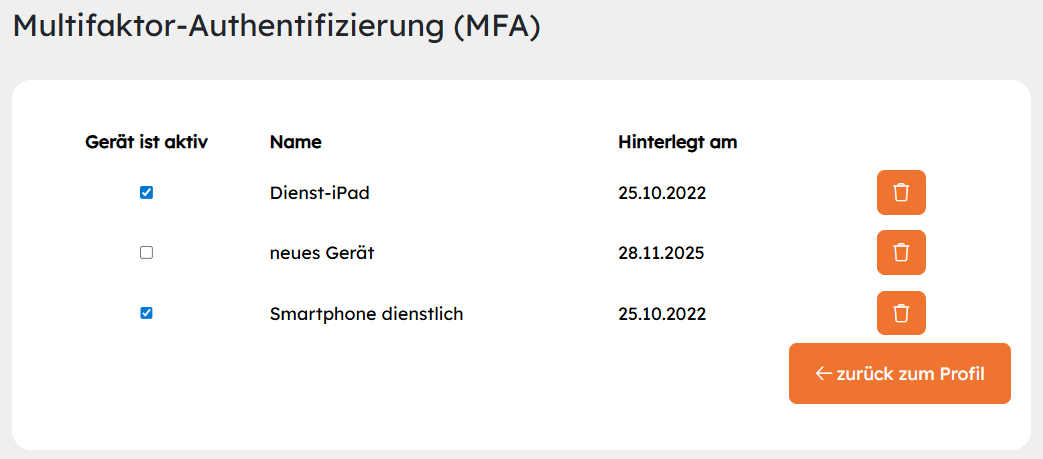 Ihnen wird die Übersicht den hinterlegten MFA-Geräten angezeigt.