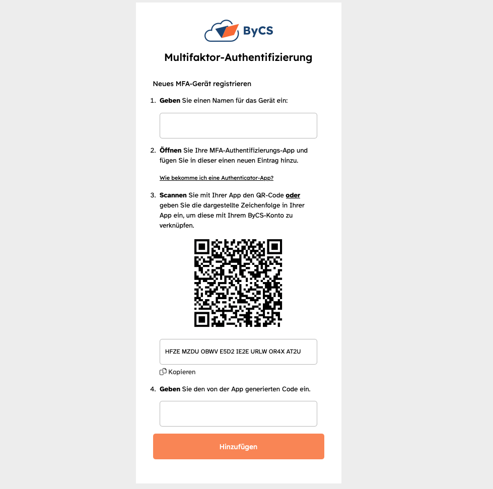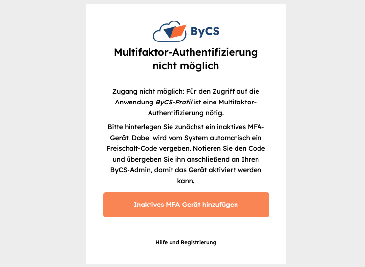 Bis zur Freischaltung durch Ihre ByCS-Administation ist das Gerät nur im inaktiven Zustand in Ihrem Account hinterlegt. Ein Login in die durch MFA geschützten Bereiche (z. B. Administration) ist noch nicht möglich.