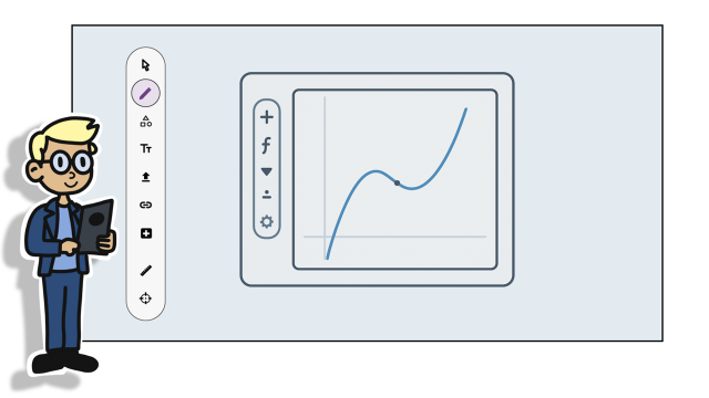 In diesem Themenkomplex lernen Sie, wie Sie die verschiedenen Werkzeuge und Funktionen des Boards nutzen können, um Ihren Unterricht zu gestalten. Dazu gehören das Abdeckwerkzeug, das Drei-Punkte-Menü, der GeoGebra Rechner, die Gleichungseingabe, die Hintergrundauswahl, das Lineal, das Geodreick, der Winkelmesser, das Kontextmenü, der Stift, der Textmarker und der Radierer.