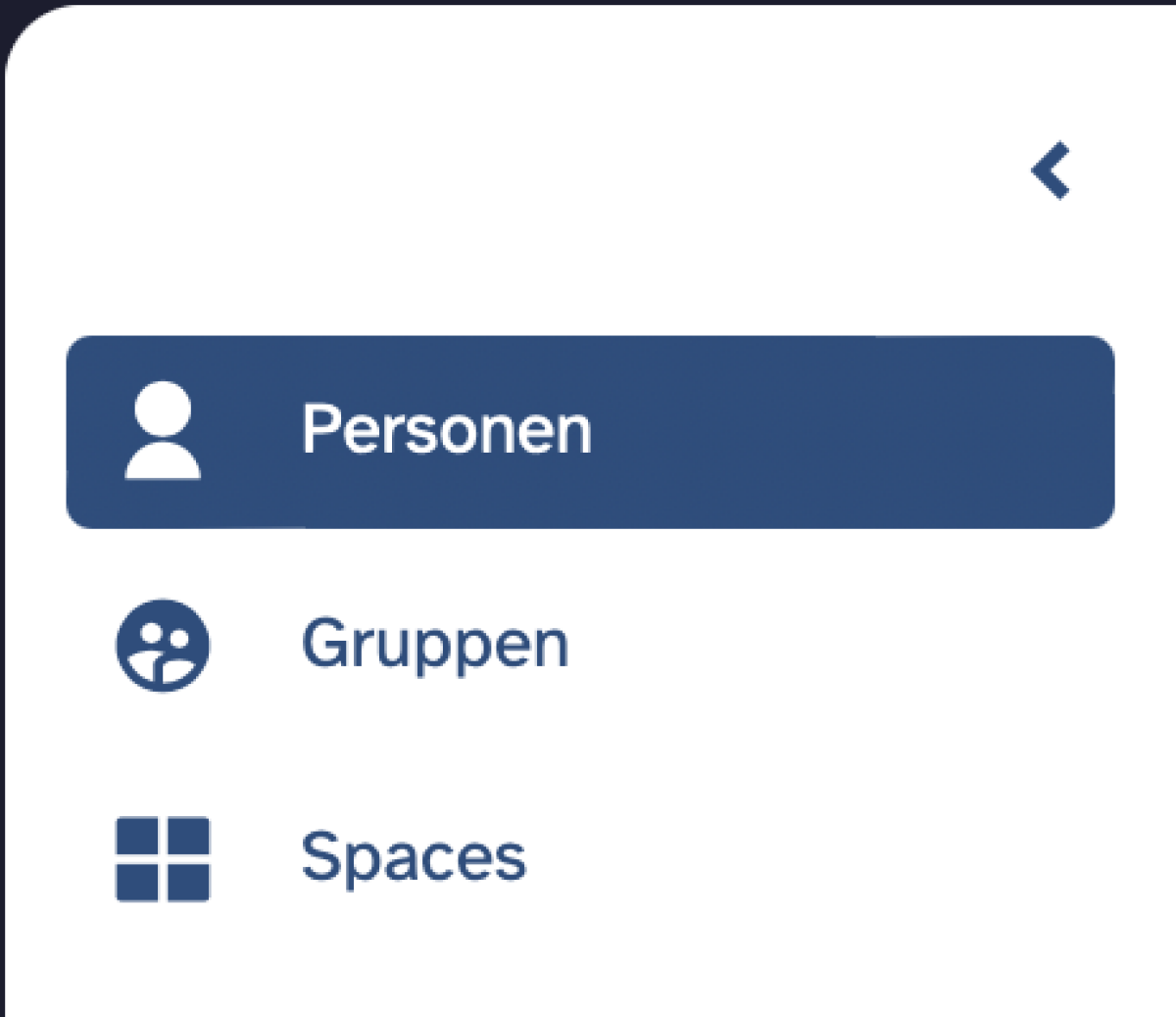 Die linke Seitenleiste gliedert sich in die Teilbereiche Personen, Gruppen und Spaces.