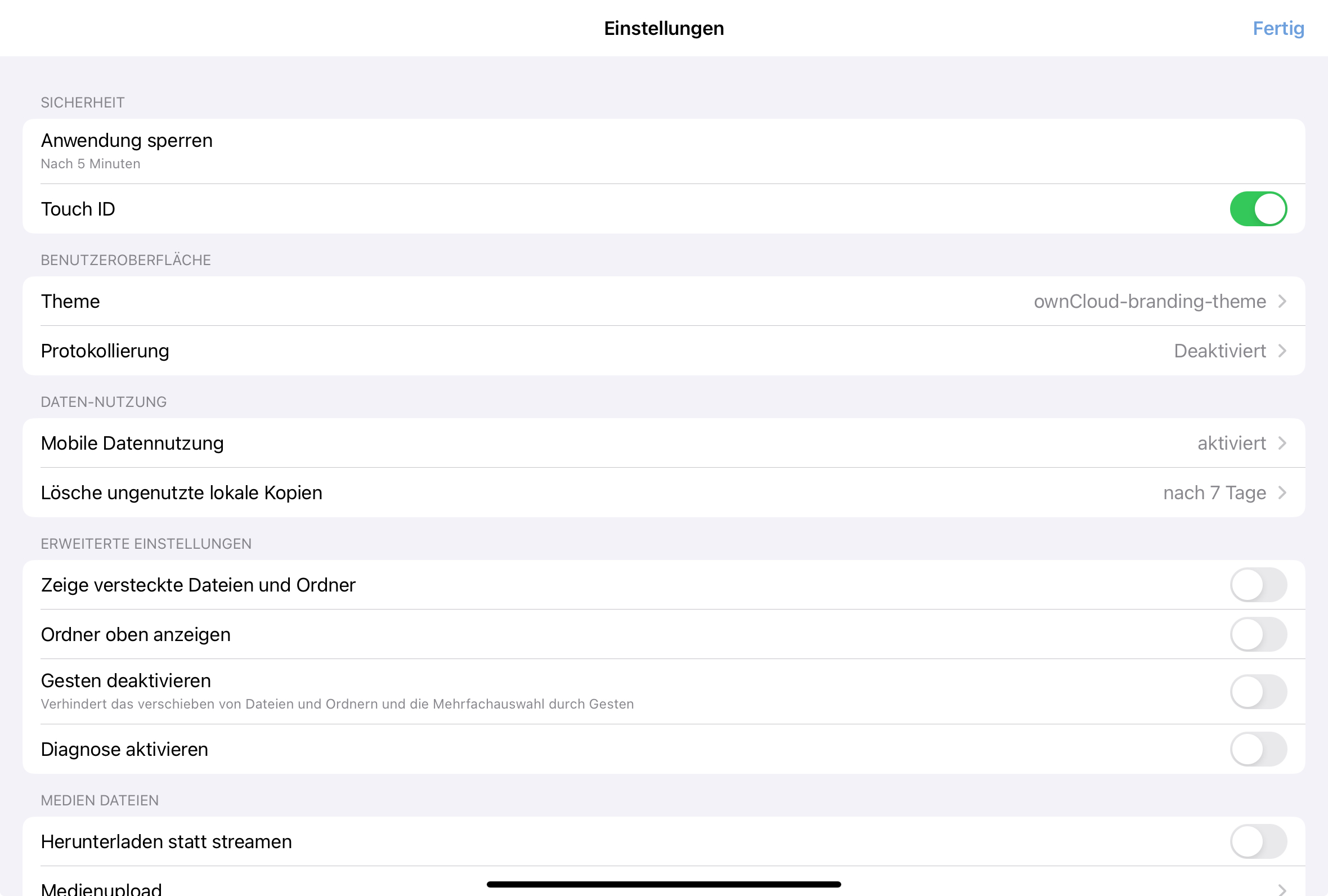 - Du möchtest deine Dateien vor Fremdzugriff auf deinem Tablet schützen? Behalte den Code und Toch ID-Regler im On-Zustand. Falls nicht, klicke auf den Schieberegler für einen schnelleren Zugriff