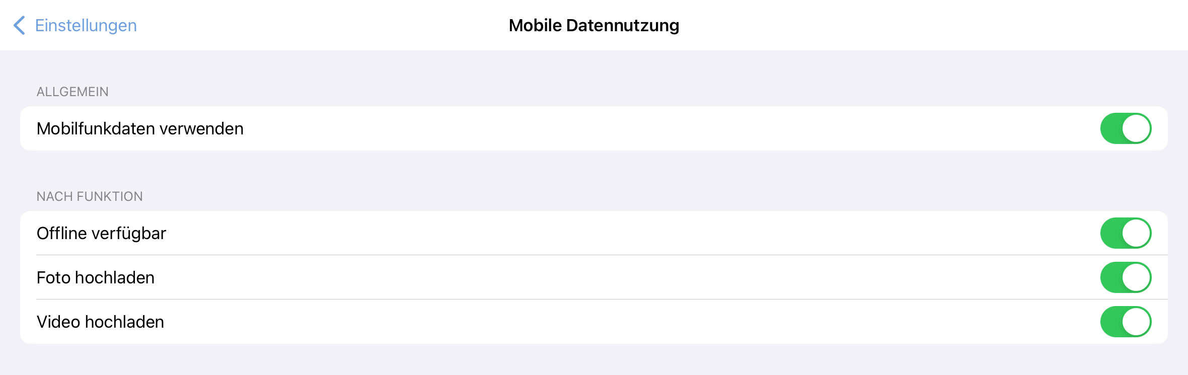 - Du möchtest dein Datenvolumen schonen und in der Drive-App lediglich mit WLAN-Zugriff Dateien hoch- und herunterladen? Klicke auf Mobile Datennutzung. Auf der sich öffnenden Seite kannst du entscheiden, ob du eine mobile Datennutzung komplett unterbinden möchtest oder diese lediglich für einzelne Funktionen wie z.B. das Hochladen eines Videos zulässt.