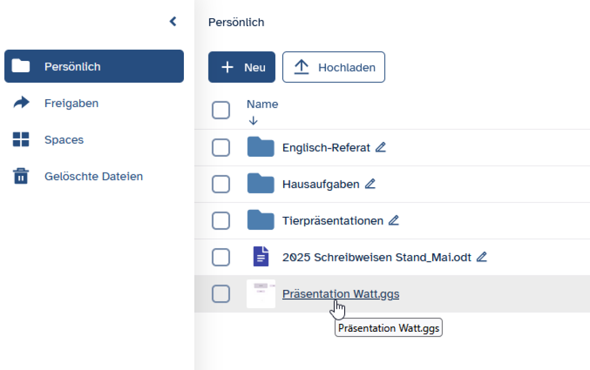 Hinweis: Sie können die Schaltfläche + Neu nur verwenden, wenn Sie im aktuellen Ordner Bearbeitungsrechte haben.