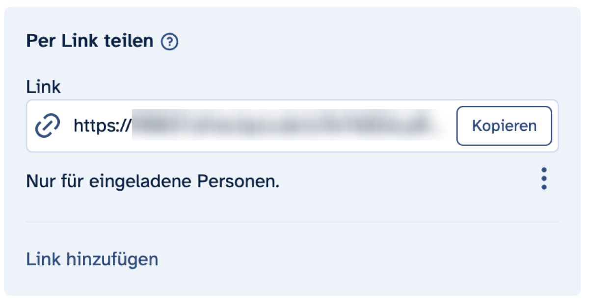 Nachdem du die gewünschte Datei angeklickt hast, klicke auf das Link-Symbol oder auf das Personen-Symbol und dann auf Link erstellen.