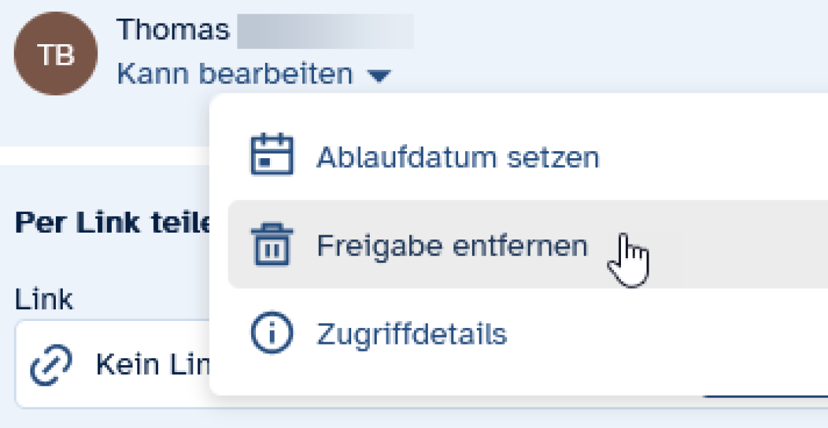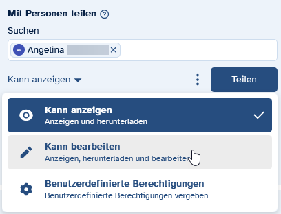 Für jede Person kannst du die Berechtigung individuell einstellen, indem du auf den Drop-Down-Pfeil klickst.
