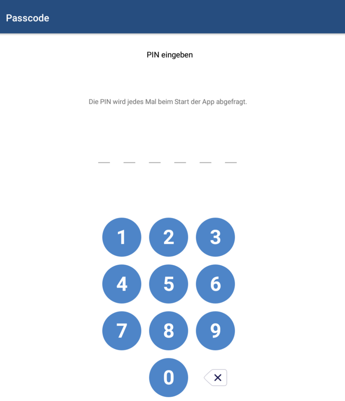 Nach dem erfolgreichen Login können Sie nun die Drive App nutzen. Wie bei jeder Nutzung werden Sie nun beim Öffnen der App aufgefordert, die vorher festgelegte PIN einzugeben. Ein Startbildschirm informiert Sie über Neuerungen.