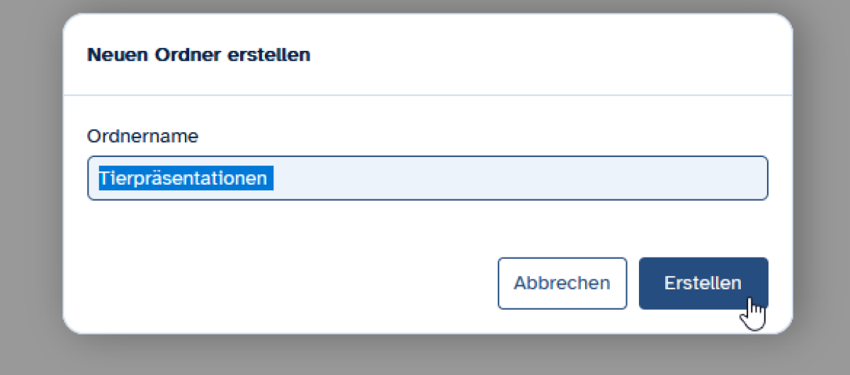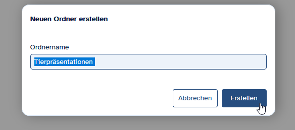 Klicke zum Abschluss auf die Schaltfläche Erstellen, um den Ordner anzulegen. Du kannst dafür auch ebenso die Enter-Taste auf deiner Tastatur nutzen.