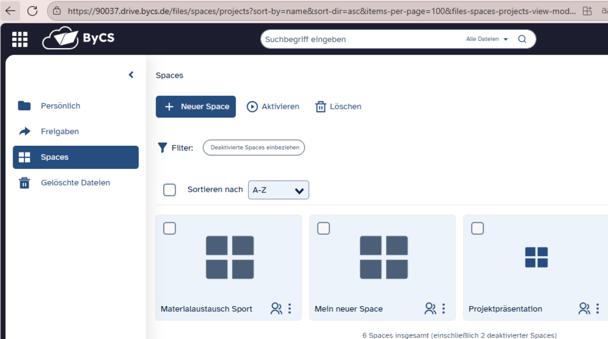 Ihr neu erstellter Space erscheint nun in der Übersicht.