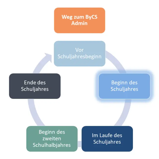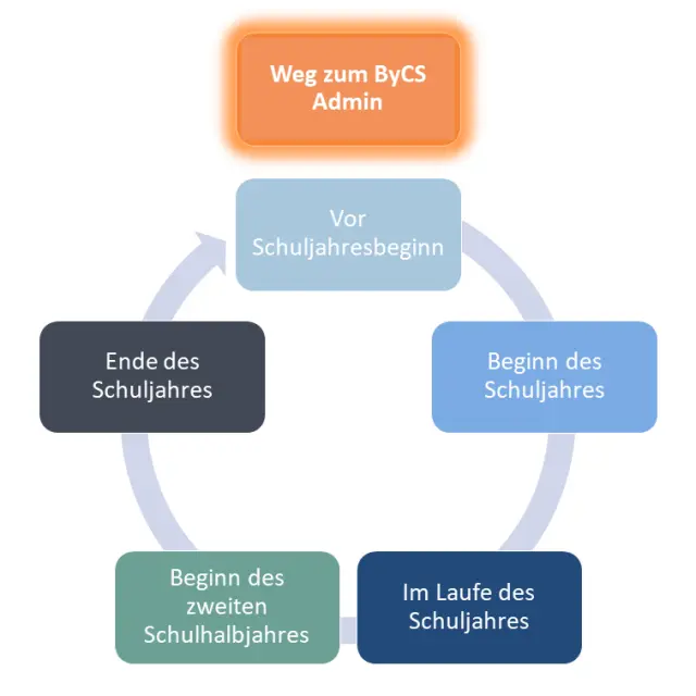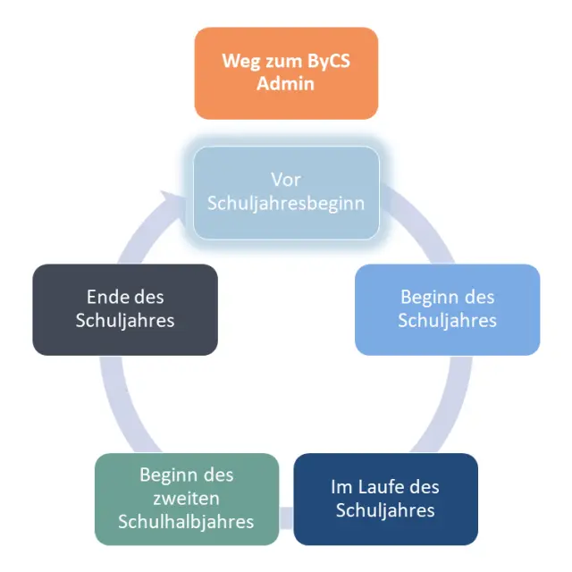 Im Laufe des Schuljahres fallen viele verschiedene Aufgaben für ByCS-Admins an. Hier finden Sie Empfehlungen zum Vorgehen und Erläuterungen zu den notwendigen Aufgaben.