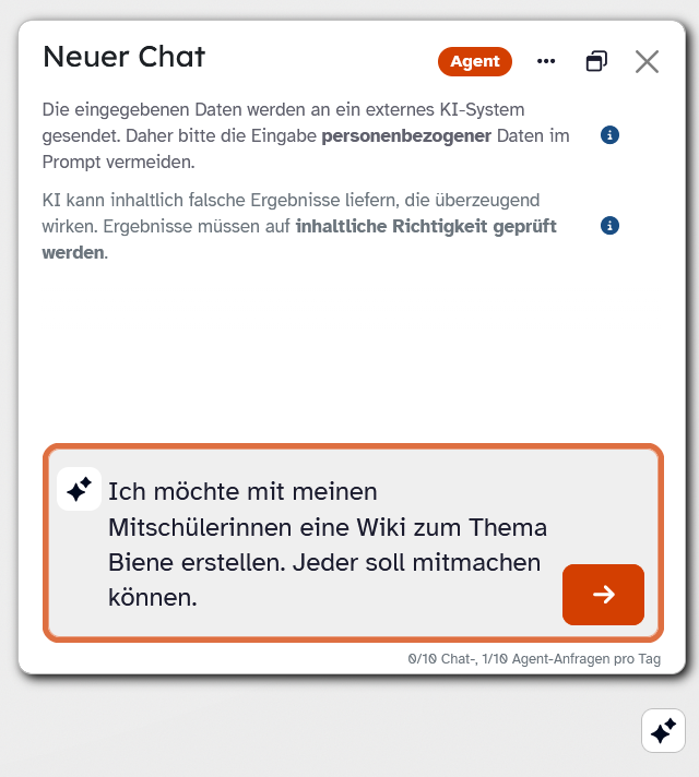 Hinweis: Solltest du eine im Tutorial beschriebene Option nicht vorfinden, bitte deine Lehrkraft, die notwendigen KI-Funktionalitäten für dich freizugeben.