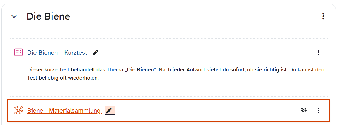 Öffne im Kursraum die Aktivität, die du gestalten möchtest, und gehe zu einer Stelle, an der du Formularfelder ausfüllen musst und dabei Unterstützung brauchst – zum Beispiel in den Einstellungen der Aktivität.