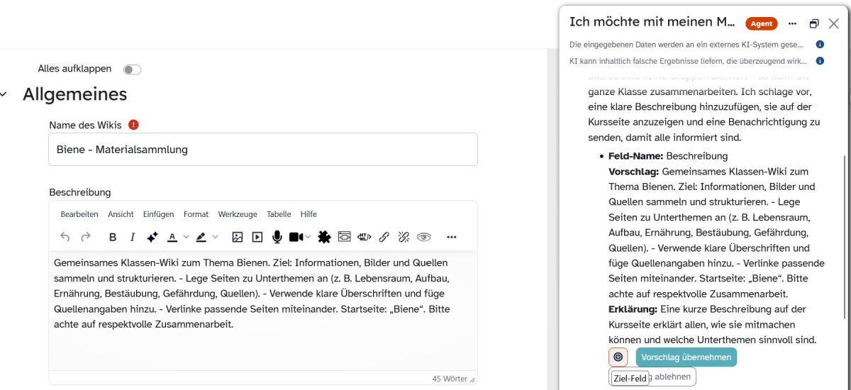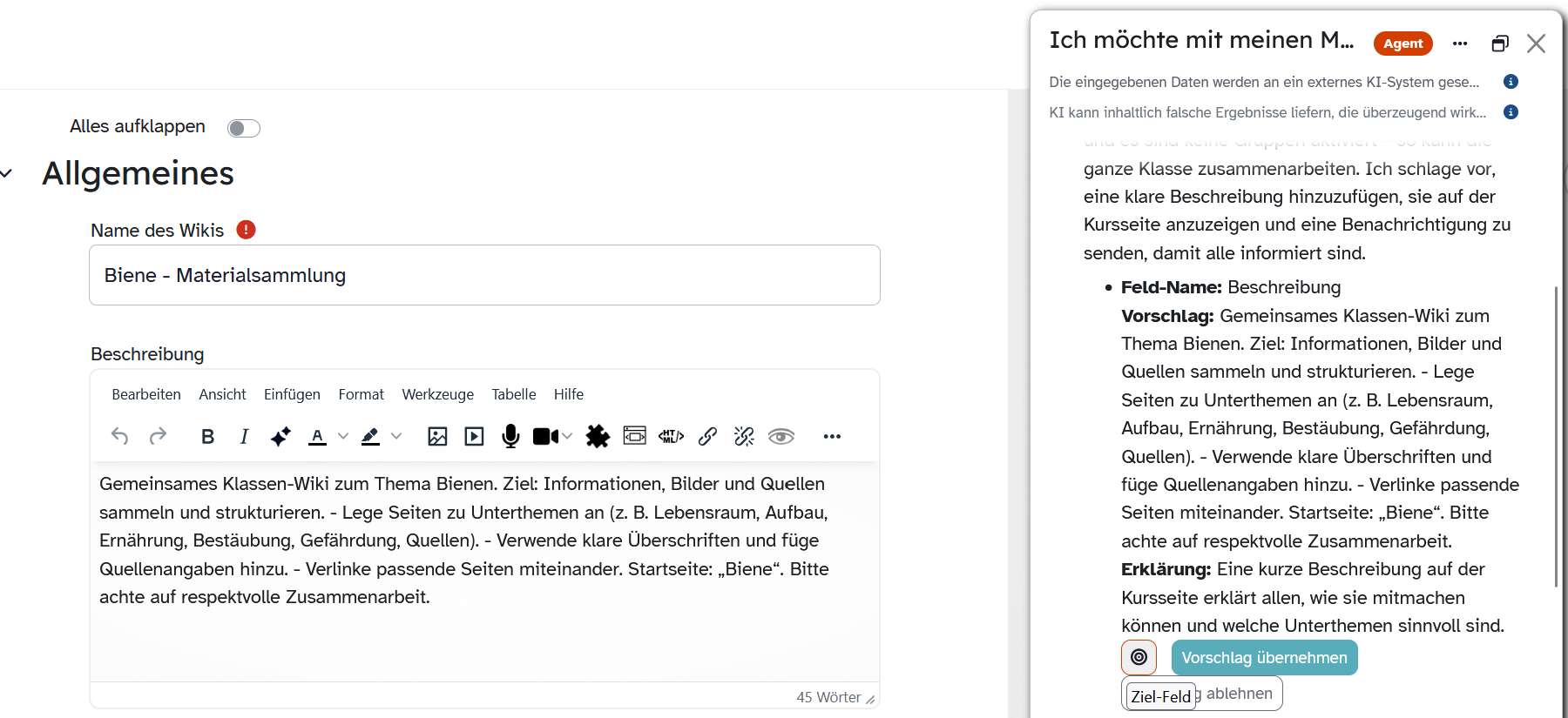 Deine Lehrkaft hat dir in einer Aktivität die Rolle Autor gegeben und du möchstest nun die Formularfelder füllen. Erfahre hier, wie dich der KI-Agent dabei unterstützt.