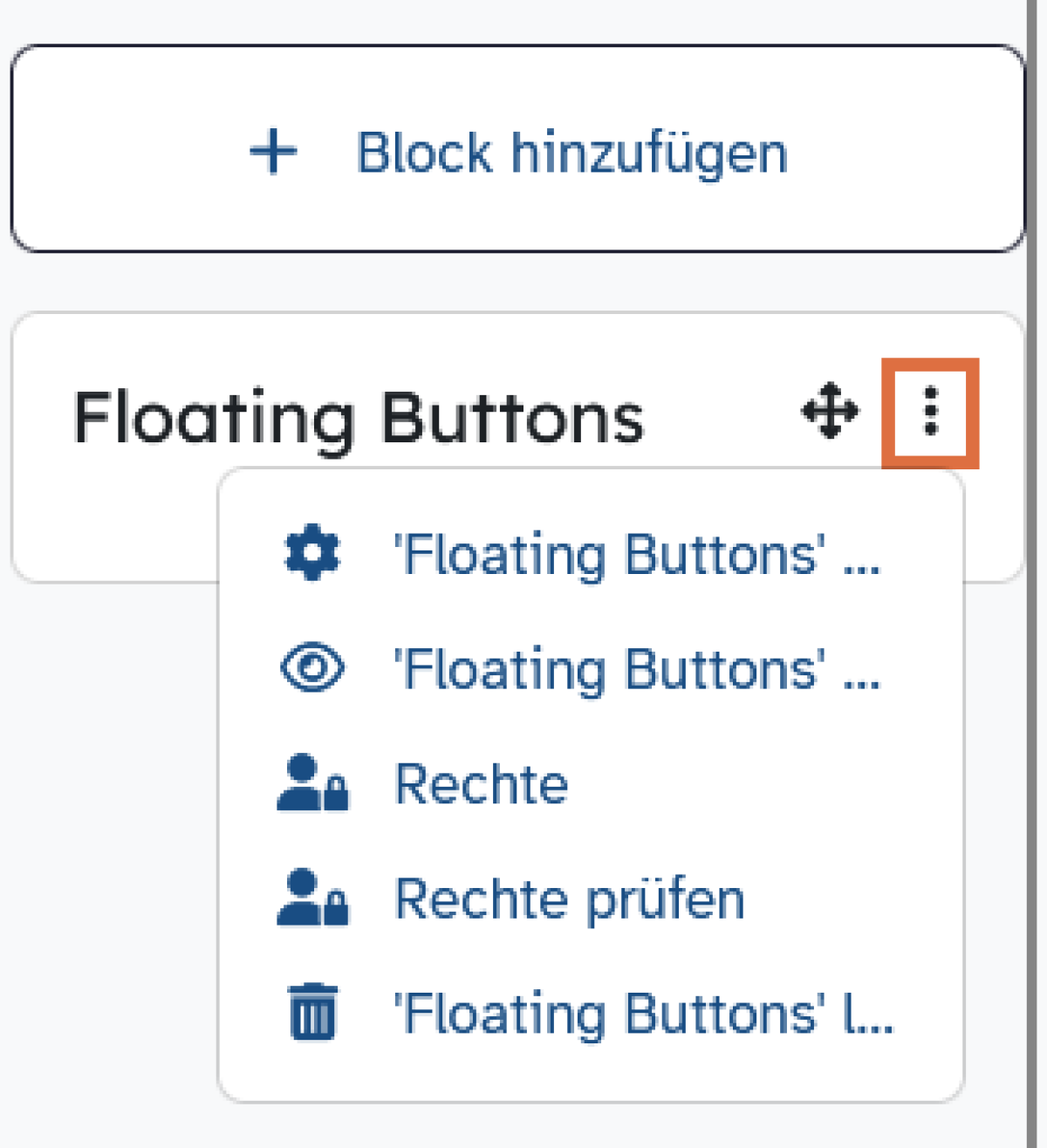 Die standardmäßigen Farben aller Floating Buttons in Ihrem Kurs lassen sich unter Blockeinstellungen gleichzeitig ändern. Legen Sie hier die Standard-Hintergrundfarbe und die Standard-Textfarbe der Icons mit Hilfe der jeweiligen Textfelder festlegen.