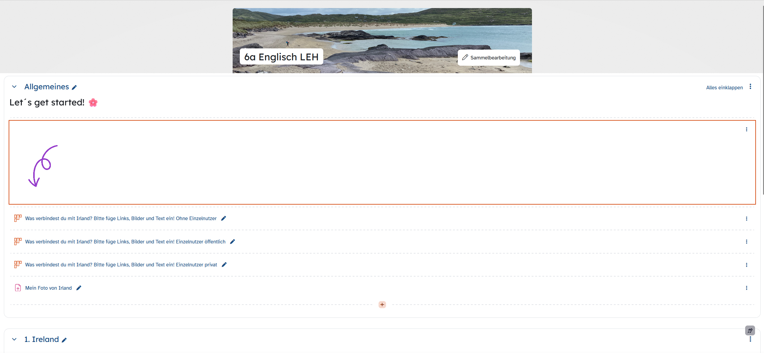 Hinweis: Im ablenkungsfreien Modus werden die Topbar, der Footer, die Blockleiste und der Kursindex-Tab zur besseren Fokussierung auf die Inhalte ausgeblendet.