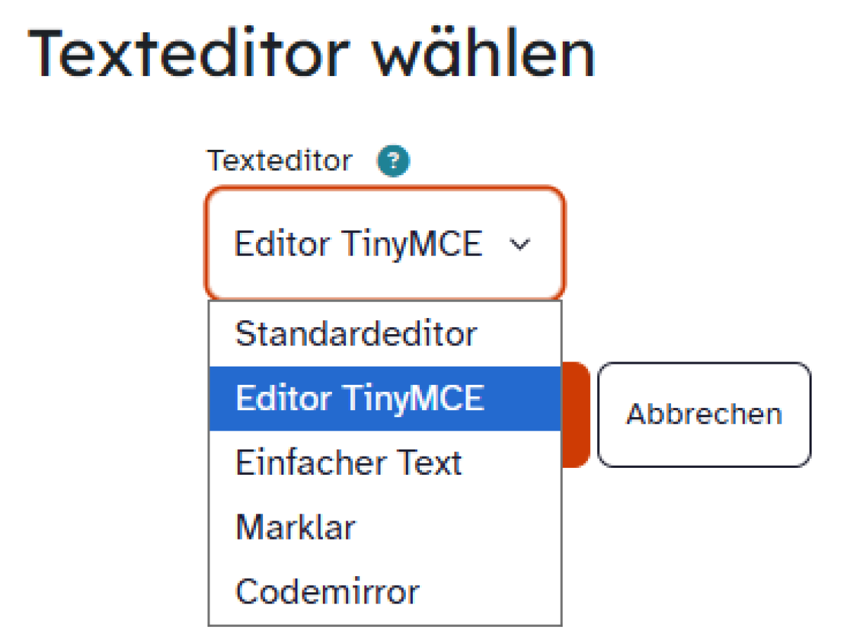 In der Lernplattform haben Sie die Möglichkeit, mit verschiedenen Texteditoren zu arbeiten. Mit nur wenigen Schritten können Sie Ihren Texteditor wechseln und Ihren Bedürfnissen anpassen.