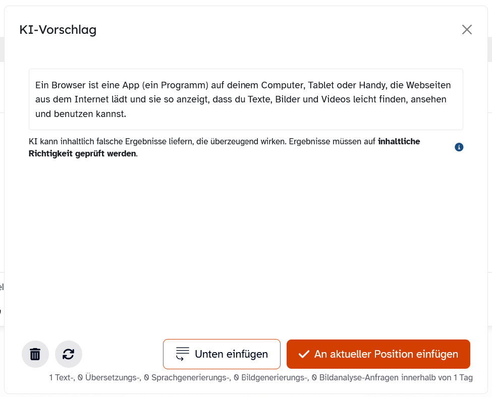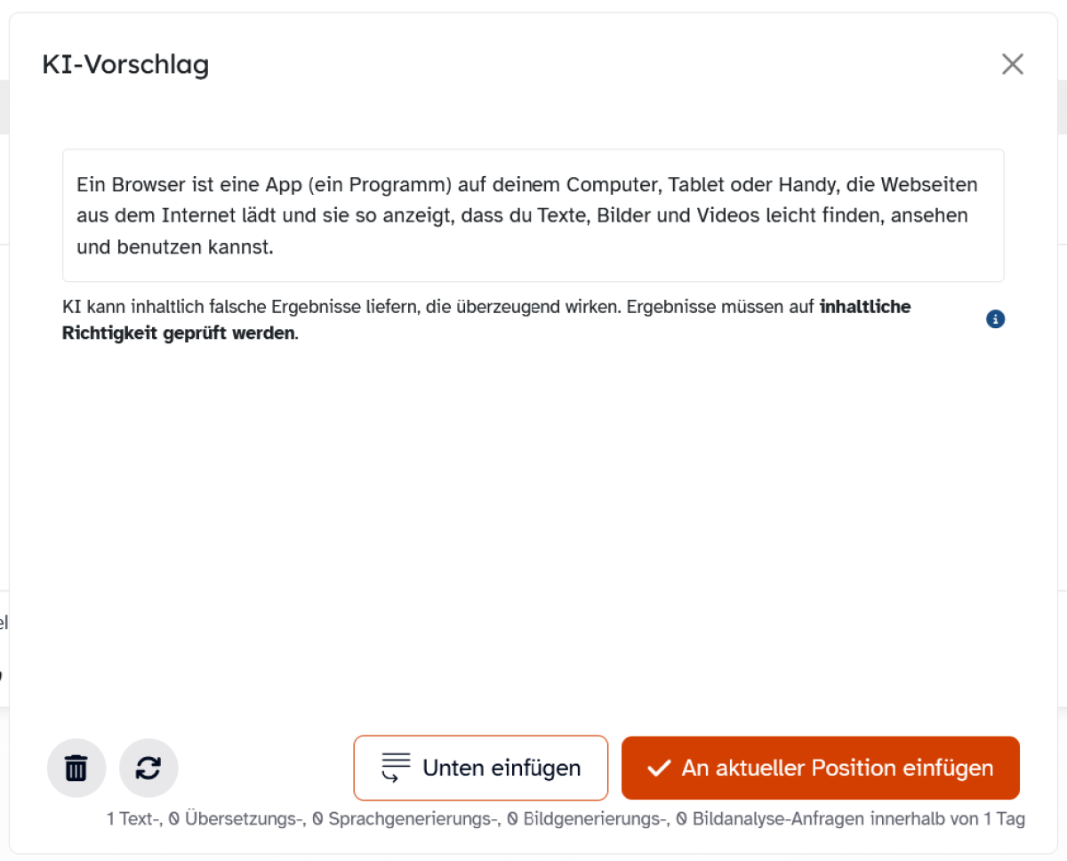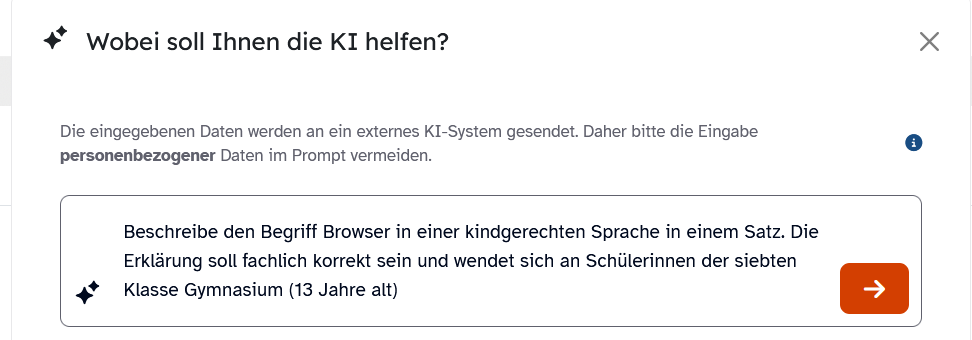 Ebenso ist es denkbar, dass sich Schülerinnen und Schüler bei der Erstellung des Glossars ggf. mit von Ihnen aktivierten KI-Funktionen einbringen.