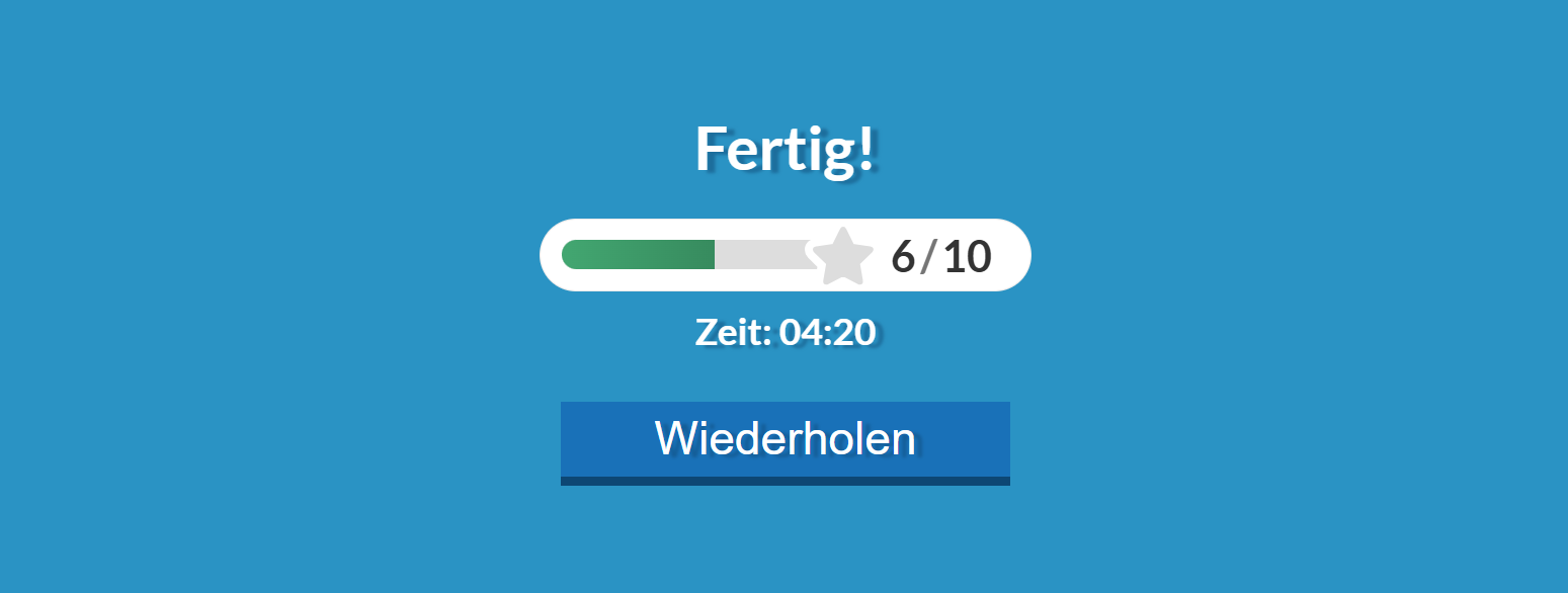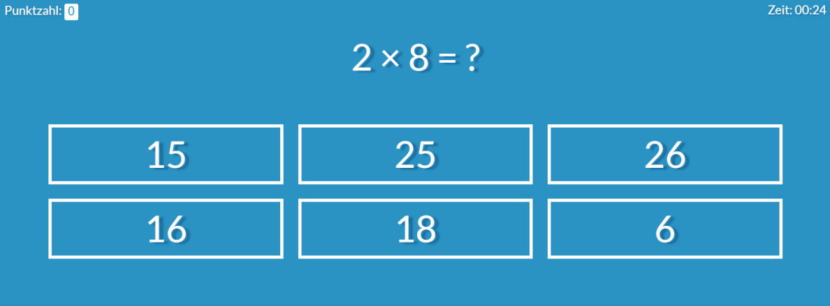 Klicke auf eine der Antwortmöglichkeiten, um die Aufgabe zu lösen. Dann wird dir gezeigt, welche Antwort die richtige ist. Hast du diese gewählt, dann erhöht sich deine Punktzahl um eins.
