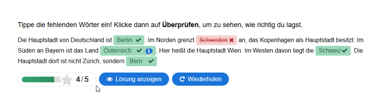 Klicke auf Lösung anzeigen, um bei falschen Eingaben die richtige Lösung zu sehen.