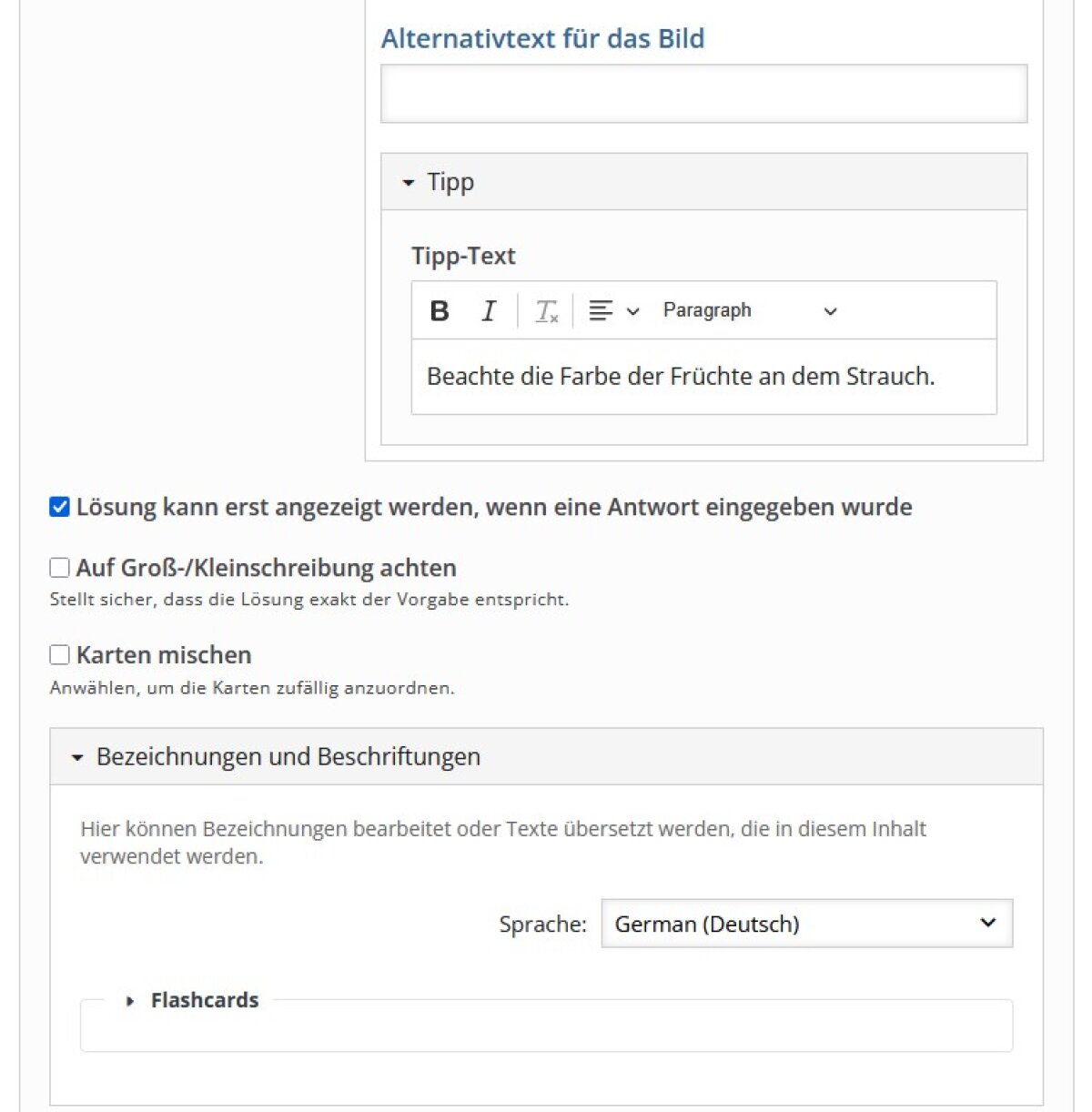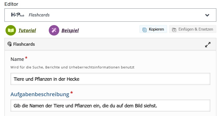 H5P-Inhaltstyp Flashcards verwenden