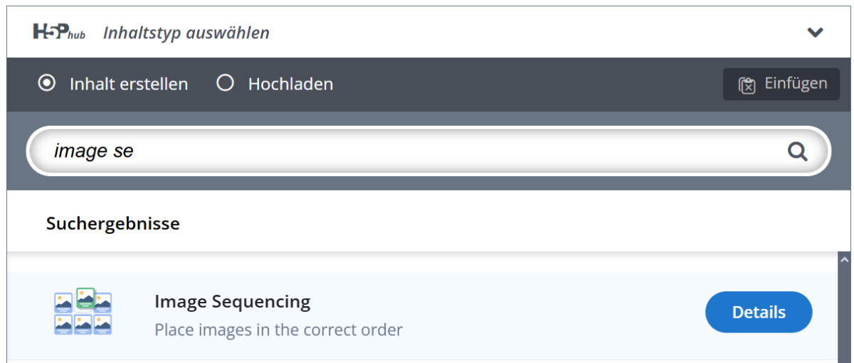 Suchen Sie dort entweder über das Suchfeld nach dem Inhaltstyp Image Sequencing, indem Sie den Begriff eintippen, oder finden Sie ihn in der Auflistung darunter und klicken darauf.