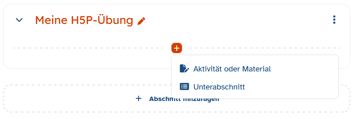 Navigieren Sie dann an die Stelle Ihres Kurses, an der Sie die H5P-Aktivität erstellen möchten.
