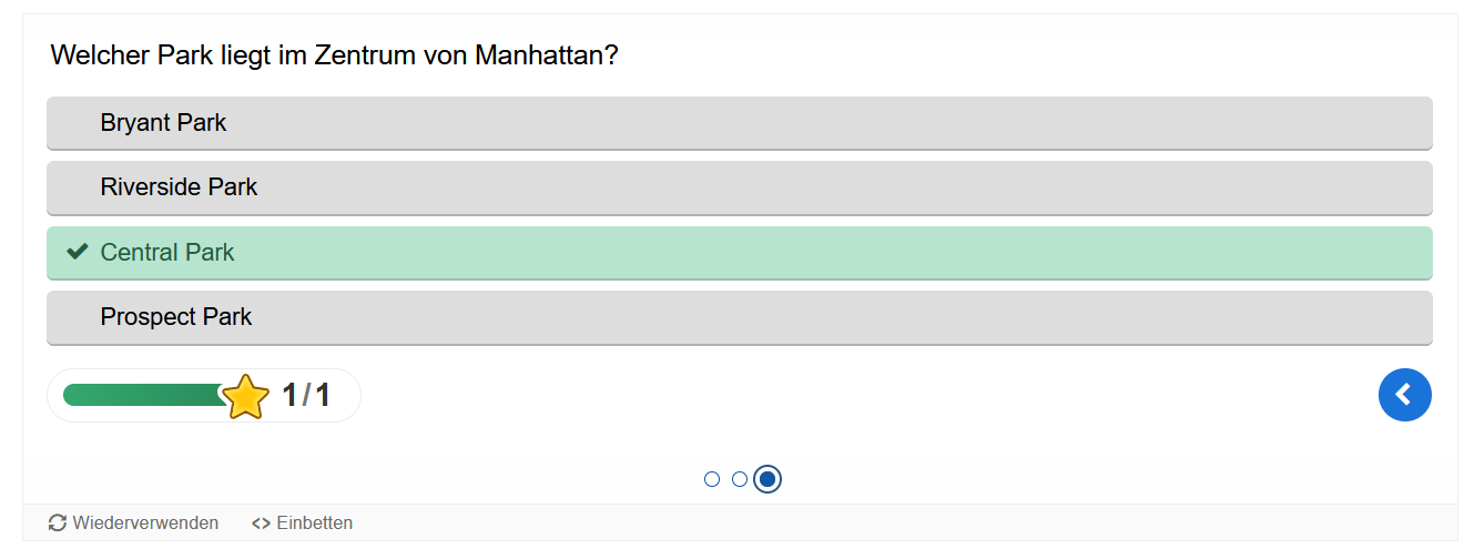 Aktivieren Sie in Ihrem Kurs die Bearbeitung und gehen an die gewünschte Stelle, an der das Quiz entstehen soll. Fügen Sie über + Aktivität oder Material einen Interaktiven Inhalt ein.