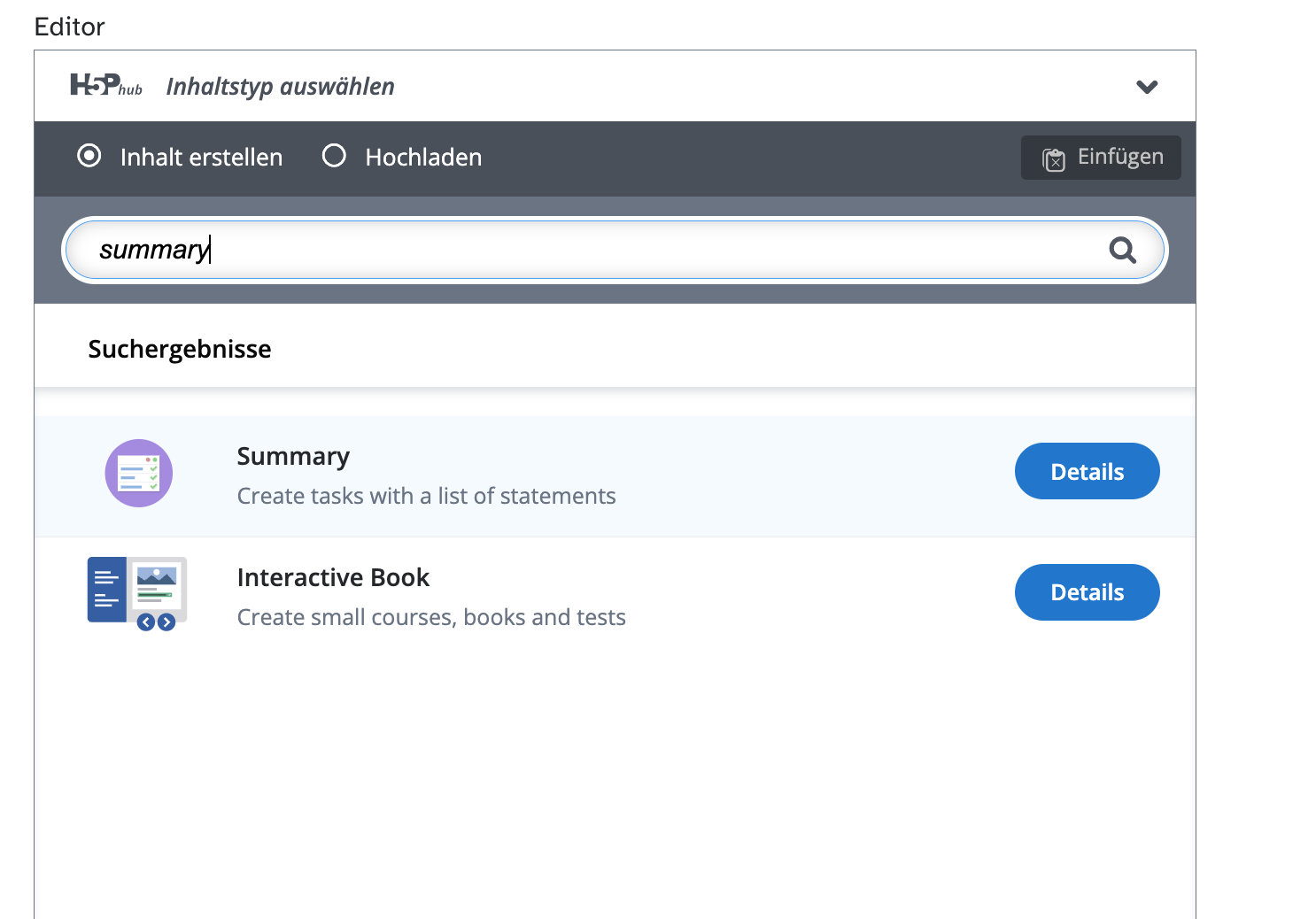 H5P-Inhaltstyp Summary verwenden