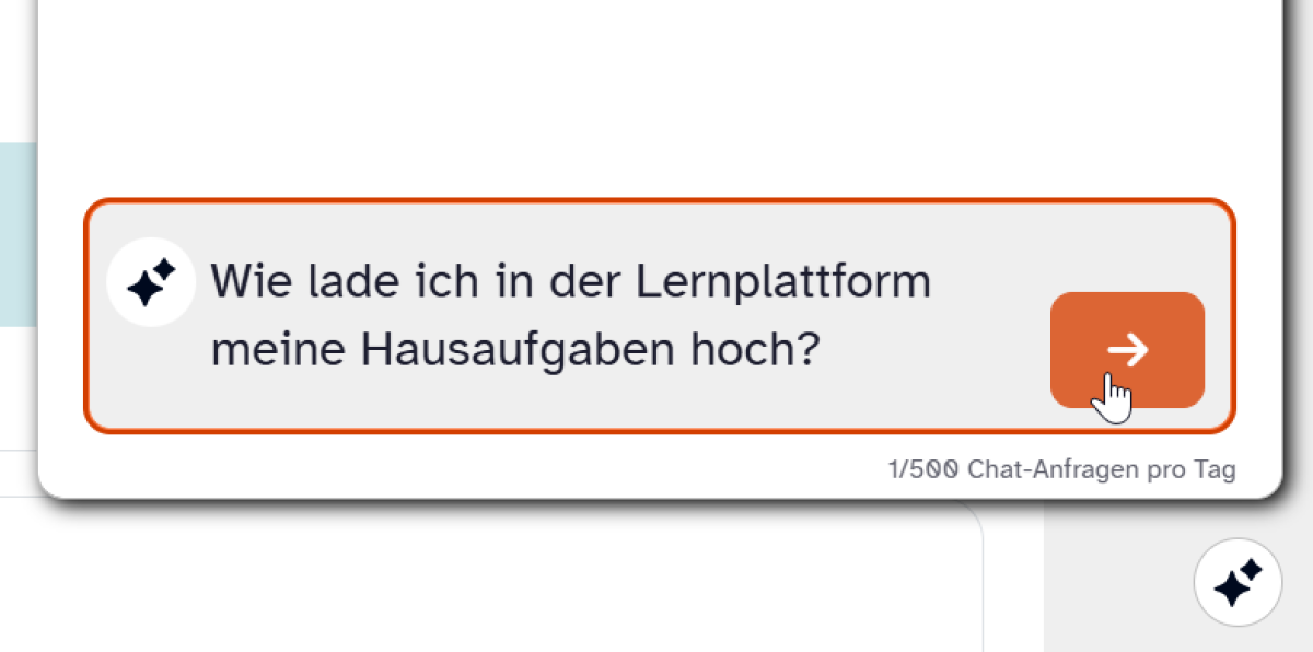Die Möglichkeit, die KI-Chat-Funktion der Lernplattform zu nutzen, besteht nur, wenn deine Lehrkraft dies für den Kurs freigeschaltet hat. Wenn du das im Folgenden beschriebene KI-Symbol nicht auf deinem Bildschirm siehst, so fehlt diese Freischaltung.