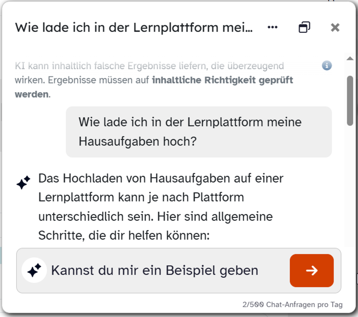 Bitte beachte aber bei der Verwendung, dass du im KI-Chat pro Tag nur 500 Anfragen stellen kannst.