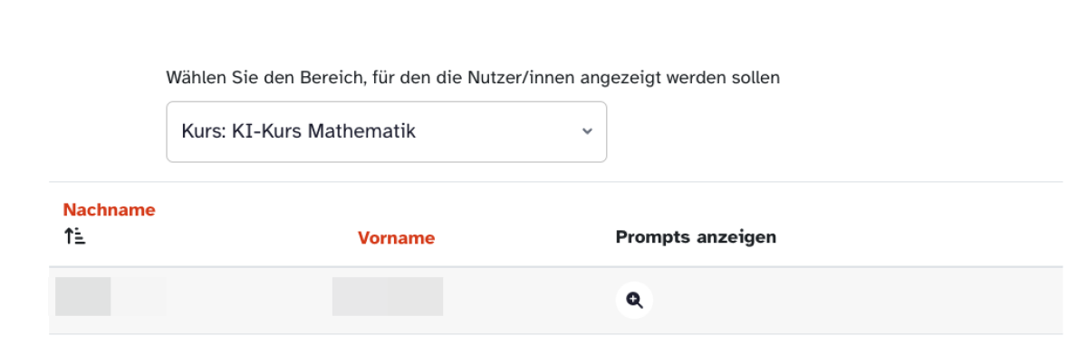 Über das Lupen-Symbol neben dem Namen des Lernenden öffnen Sie die Übersicht mit den eingegebenen Prompts.