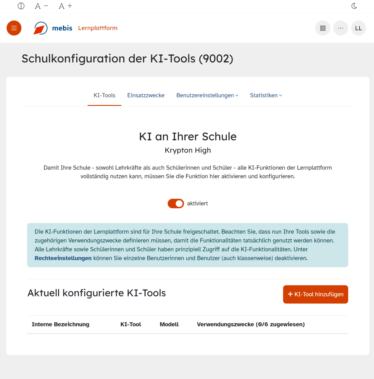 Um ein KI-Tool der Lernplattform für verschiedene Einsatzzwecke zu nutzen, sind einige Schritte erforderlich, bevor die Lehrkräfte Ihrer Schule auf deren Funktionalität zugreifen können. Für Sie als ByCS-Admin gilt es, die KI-Tools individuell zu konfigurieren. Hier erfahren Sie, was dabei zu beachten ist.