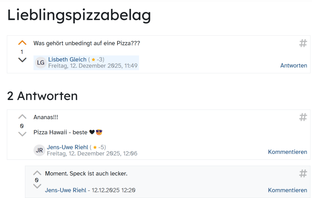 Dieser kann jetzt wiederum von teilnehmenden Personen im Kurs bewertet oder ebenfalls kommentiert werden.