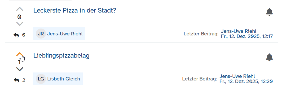 Um eine Antwort zu einem Beitrag hinzuzufügen, klicke auf den Beitragstitel, um die Detailansicht zu öffnen.
