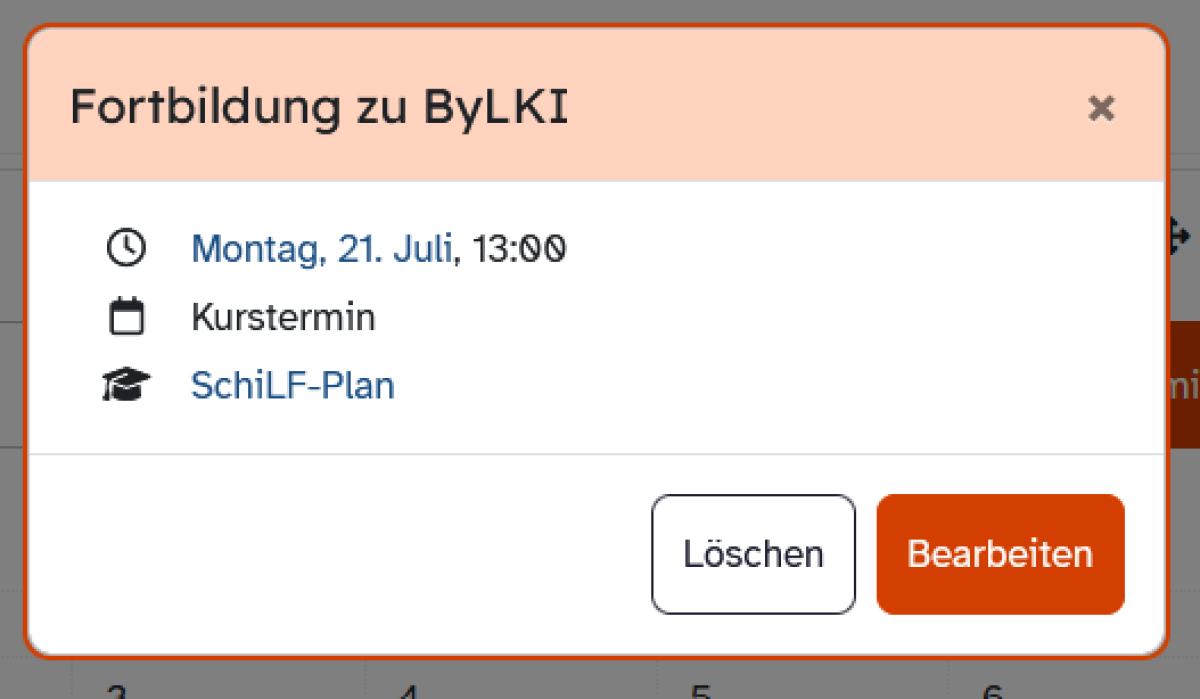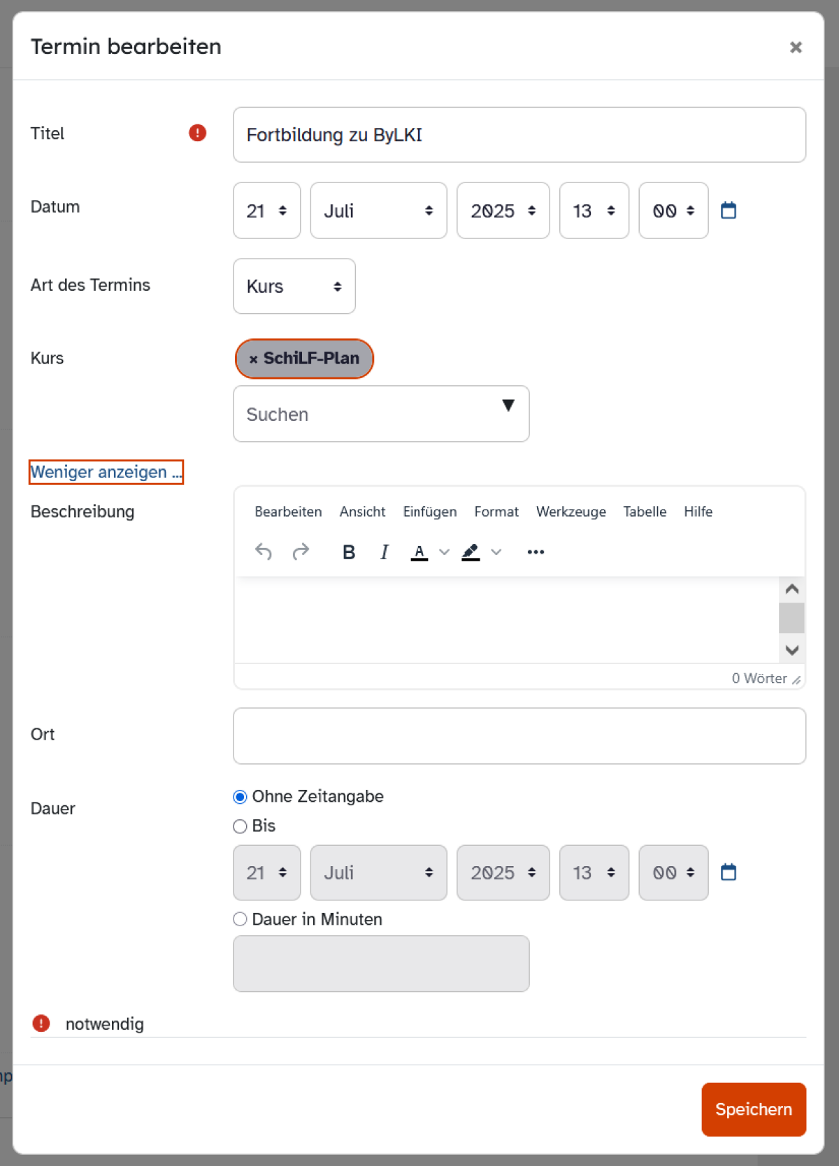 Bitte beachten Sie: Sollten Sie in dem zugehörigen Kursraum keine Bearbeitungsrechte des Termins besitzen, so fehlt diese Schaltfläche.