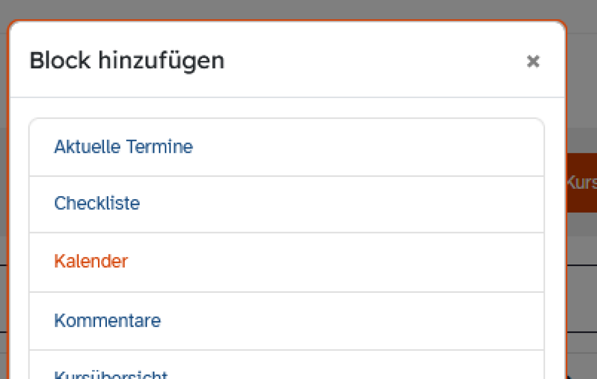 Legen Sie sich den Block Kalender auf dem Schreibtisch an und genießen Sie den Überblick über alle Fälligkeiten und Termine in all Ihren Kursen. Erfahren Sie hier mehr über die Vorteile des Kalenders auf Ihrem Schreibtisch!