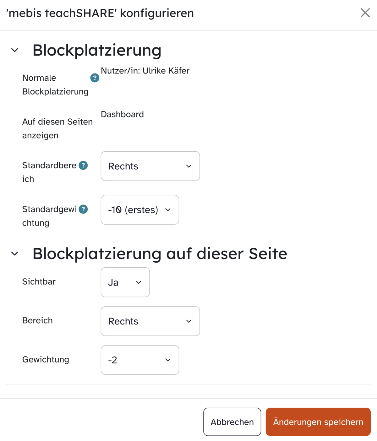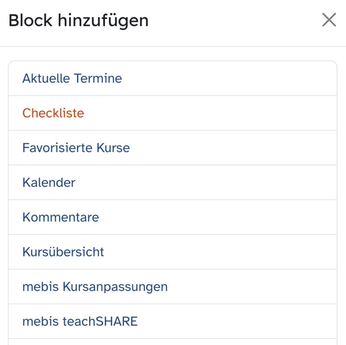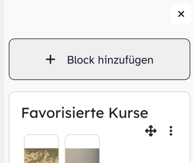 Nutzen Sie die Möglichkeit, den Block an der gewünschten Stelle Ihres Schreibtisches zu platzieren. Wählen Sie hierzu das Drei-Punkte-Menü (Kebab-Menü) des Blocks aus und klicken auf 'mebis teachSHARE konfigurieren'.