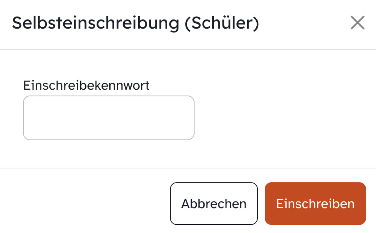 Um einem Kurs per Selbsteinschreibung beizutreten, ist es nötig, dass Sie den Link zum entsprechenden Kurs, z. B. per Mail, Kurzlink oder QR-Code, sowie das dazugehörige Kennwort erhalten.
