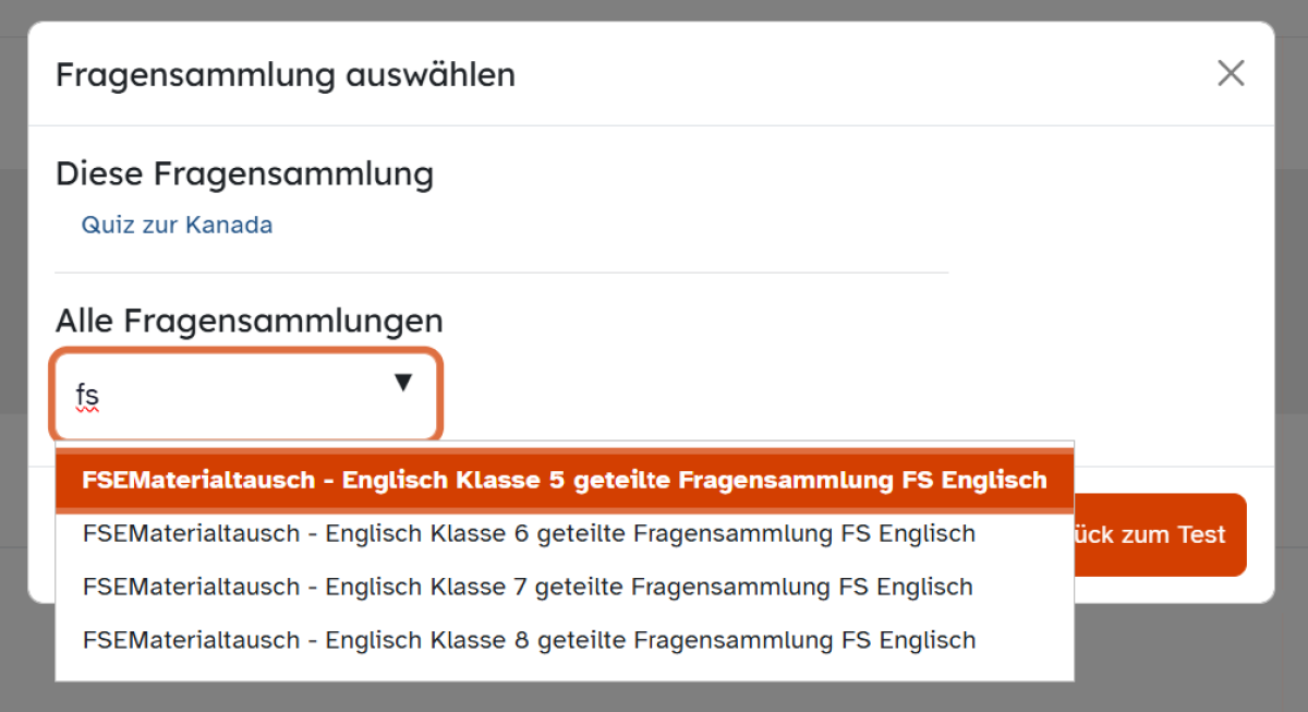 Geben Sie im Suchfeld Alle Fragesammlungen den Namen oder Teile des Namens der gewünschten Fragensammlung ein und gedulden Sie sich einen Moment.