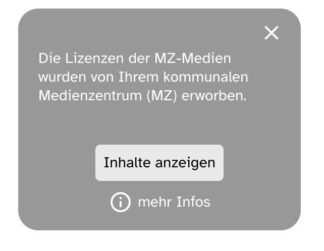 Auf der Startseite der Mediathek findest du eine Kachel zu besonderen Medienangeboten, und zwar den Inhalten der Landesmedienstelle deiner Schule (MZ-Medien). Mit einem Klick auf die Kachel erhältst du eine Kurzbeschreibung dieses Angebots. Ferner hast du die Option, mehr Informationen zu dem Thema der Kachel aufzurufen oder dir die Inhalte anzeigen zu lassen.