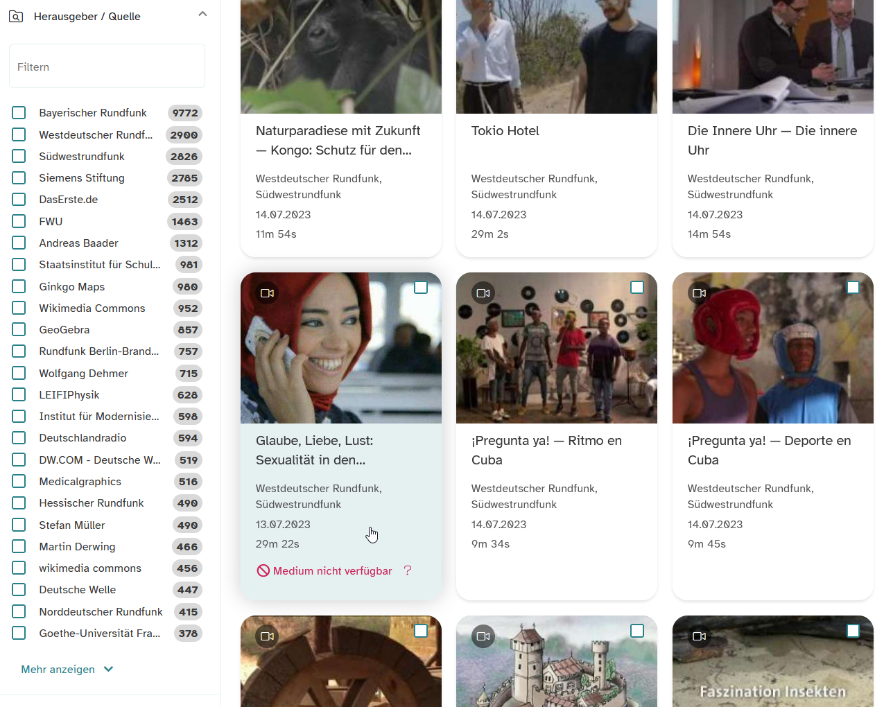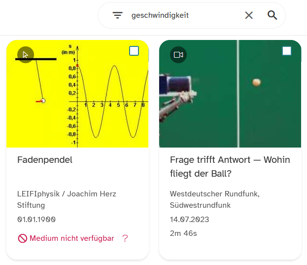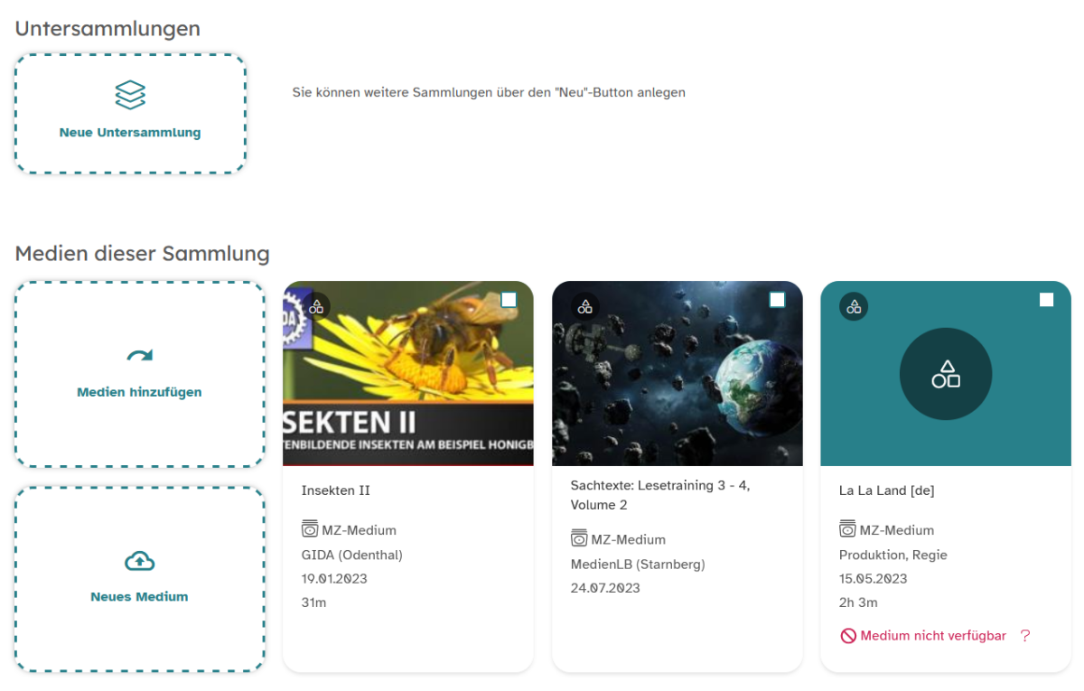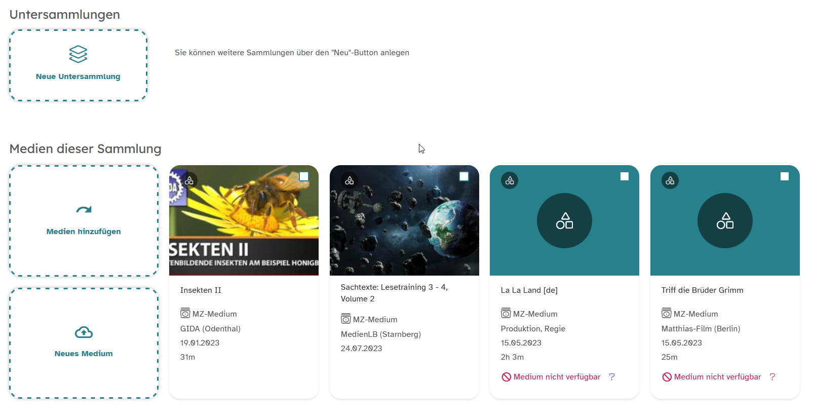 Wenn eine Lehrkraft oder ein Lernender versucht, in einer Sammlung ein solches Medium anzuwählen, ist dieses als "nicht verfügbar" gekennzeichnet.