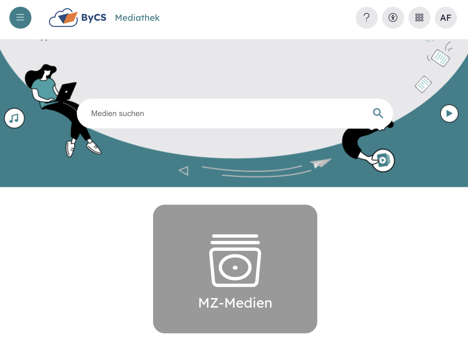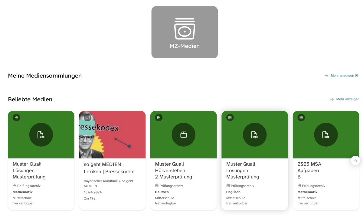 Mit einem Klick auf die Kachel MZ-Medien wirst du zu speziellen Angeboten deines kommunalen Medienzentrums geleitet.