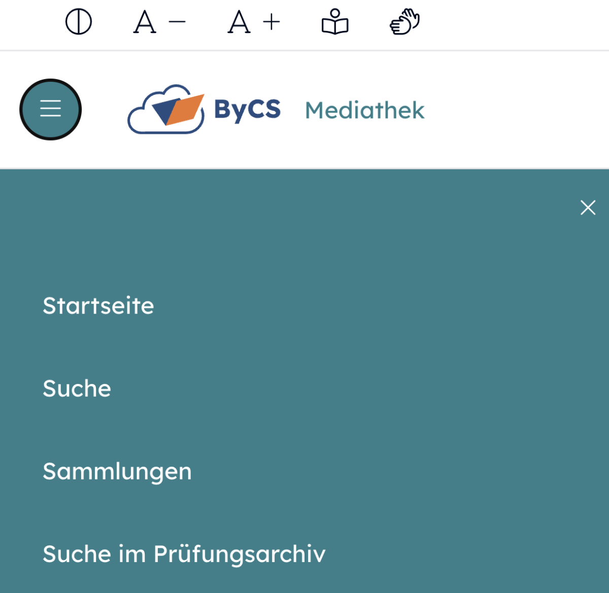 - über das Burger-Menü (Drei-Striche-Menü) zur Startseite, Suchseite, zu deinen Sammlungen oder zur Suche im Prüfungsarchiv,