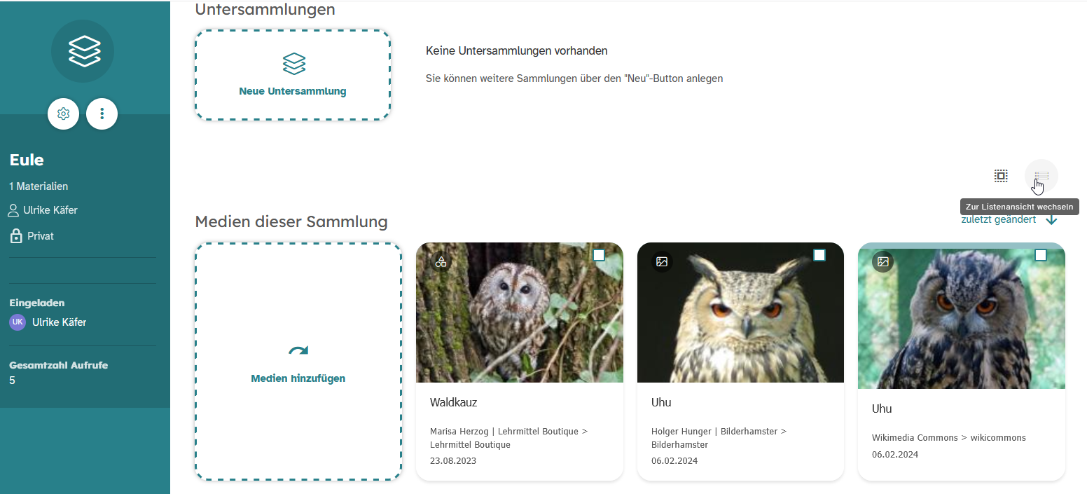 In der geöffneten Sammlung sehen Sie eine Auflistung aller bereits hinzugefügten Medien in Kachelform.