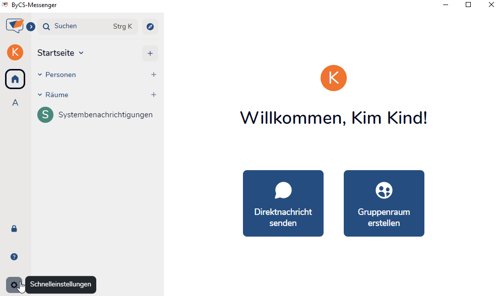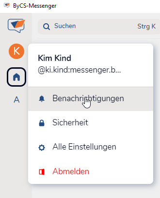 In der linken Symbolleiste navigierst du zwischen den grundlegenden Funktionen im Messenger: Benutzermenü, Startseite, eigene Schule im oberen Bereich sowie Datenschutz, Tutorials und Schnelleinstellungen im unteren Bereich.