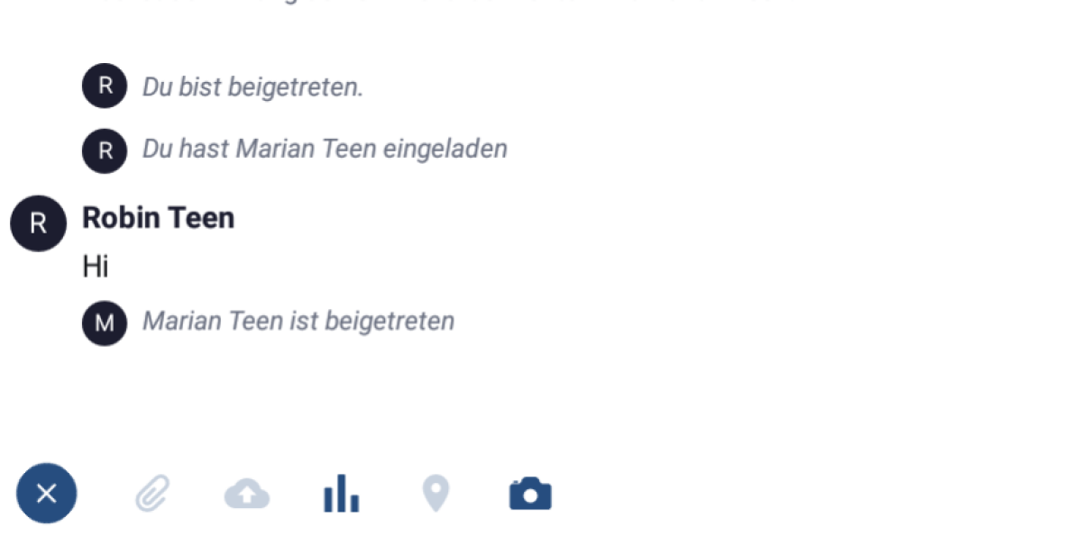Über das Kamera-Symbol kannst du ein Foto oder ein Video mit der Kamera deines Gerätes aufnehmen und dieses im Anschluss dann im Chat teilen.