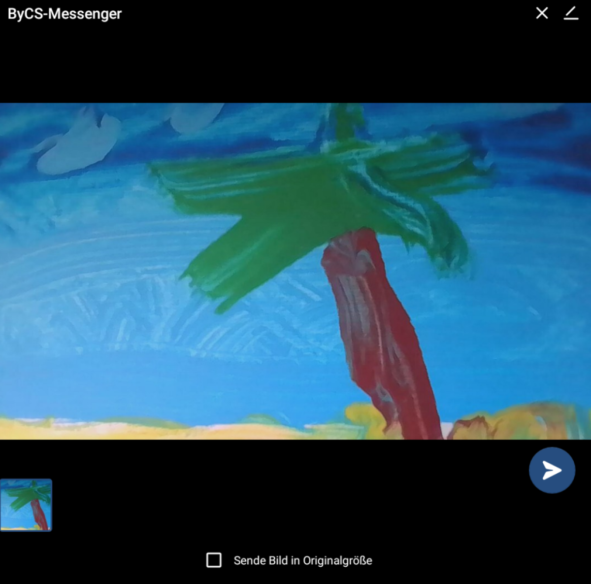 Eventuell musst du dem ByCS-Messenger noch den Zugriff auf deine Fotos erlauben, falls ein entsprechendes Pop-up-Fenster erscheint.